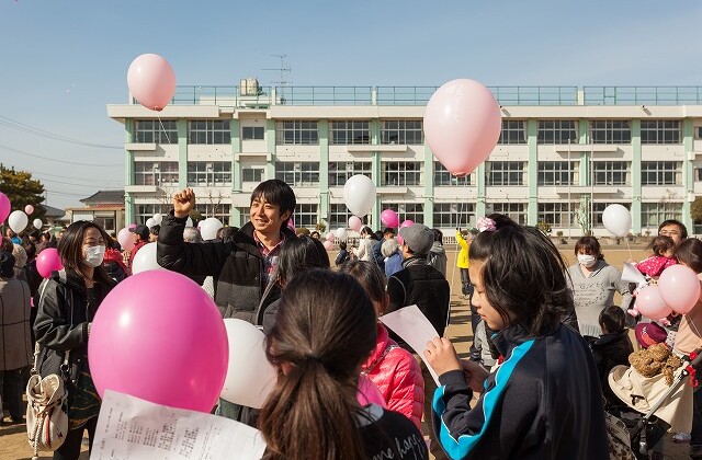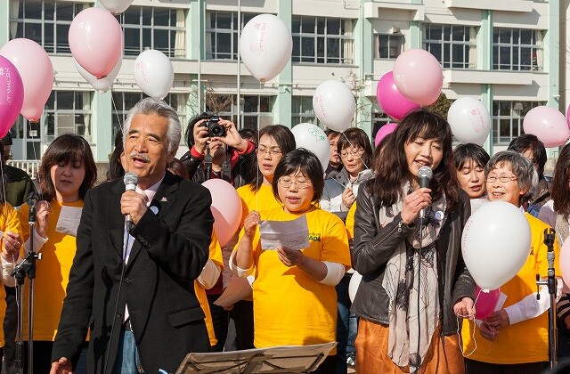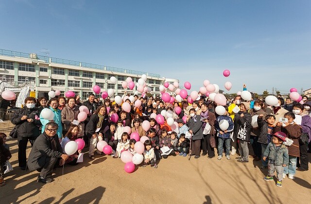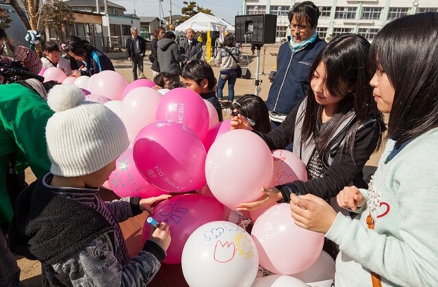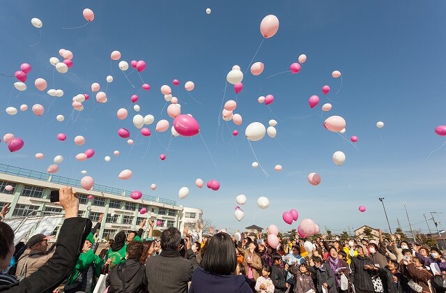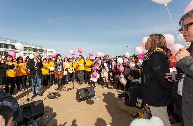 ボランティアの参加についても、株式会社ソニー・ミュージックエンタテインメントの「緑の会」のみなさんも出席され、みんなで一緒に復興の願いを込めて青空に“桜色のバルーンリリース”をしました。がんばっぺ岡田の会のみなさん、ほっちゃん、アキさん、サリーさん、ケンさん、タチバナさん、ありがとうございました。