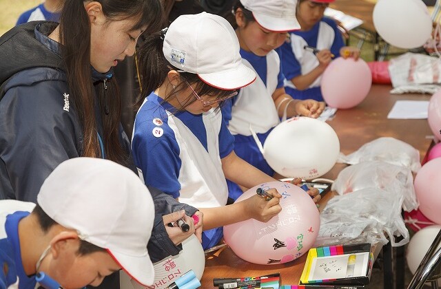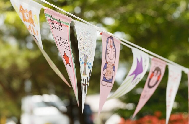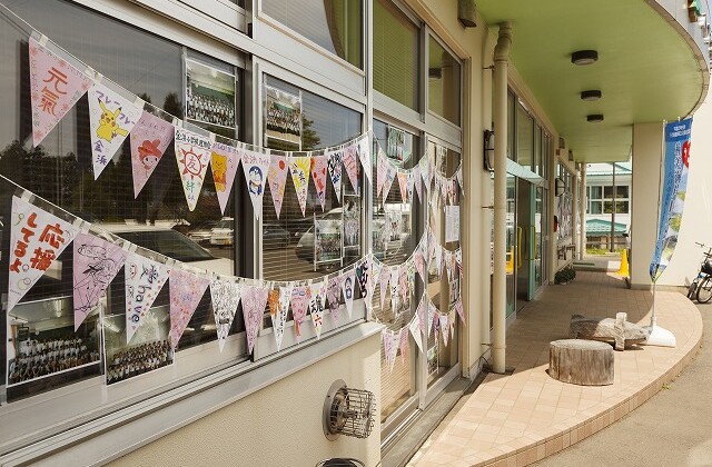 運動会では、桜の植樹に関連した競技種目提供や新企画『三角フラッグで応援しよう!』の作品展示もしました。