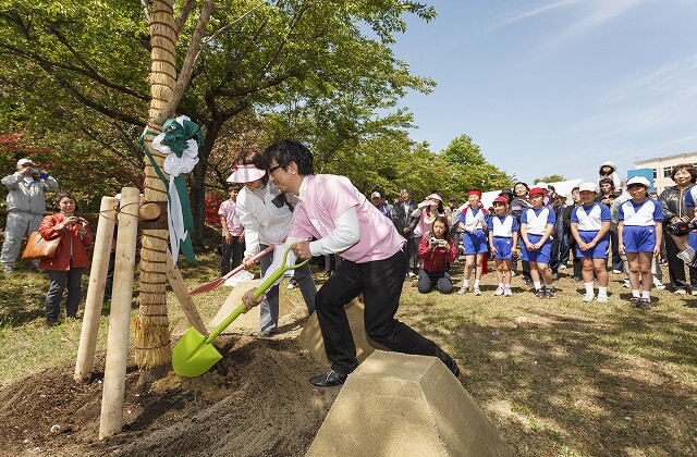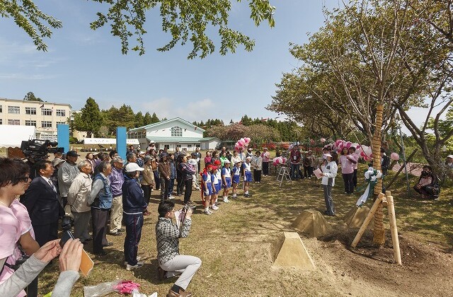 八戸市立金浜小学校(馬場悦子校長)と金浜地区のみなさんのご協力でと、とても充実したイベントとなりました。植樹とあわせて、金浜小学校の全校生徒とその保護者、地域住民のみなさんの地区の大運動会にも参加させてもらいました。これからも津波の記憶を後世へ伝えていくことを目指していきます