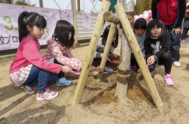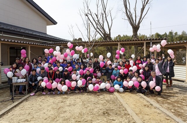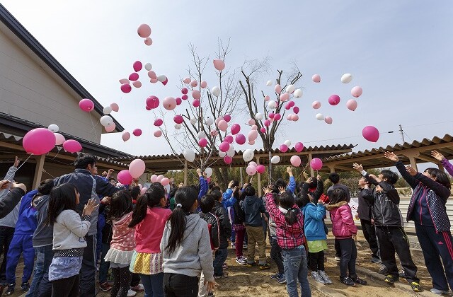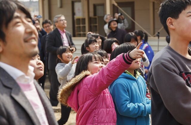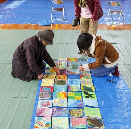 2014年度最後は、2015年3月16日福島県南相馬市立太田小学校での実施となりました。太田小学校は、福島第1原子力発電所から21キロの場所にあります。そのため、事故後同年9月まで緊急時避難準備区域となり閉鎖を余儀なくされます。市内の別の学校に避難してきた5校と一緒に間借り再開し、その後別の場所に引越し、2012年3学期にようやく自校で授業を再開することができました。市教委によると、再開時の児童数は50人で、以前の136人から65%減少しての再開となりました。その減少率は県内でも著しいものでした。…  今回は、「残る作品を」との校長先生の思いから、作家 百瀬寿とこども達が「好きな色」で一つの作品を作り上げていきます。